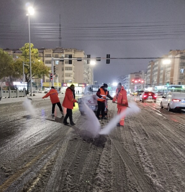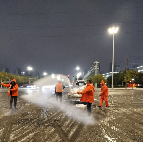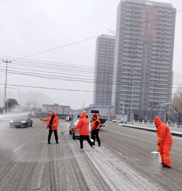在縣領導的指示下,自然美環境立即開展行動,增加撒鹽車輛及人員,對轄區主要主次干道、路口、橋梁、商超、醫院等重點點位責任區域,開展融雪劑播撒和殘雪清理。“大雪還沒停,我們就已經開始了,提前準備好融雪劑,先充分利用機械化大車清理主干道和橋梁上的雪,然后再兼顧輔路,保證片區內大路車輛可以通行,人行道可以行走。”正在清理道路積雪的環衛工說。