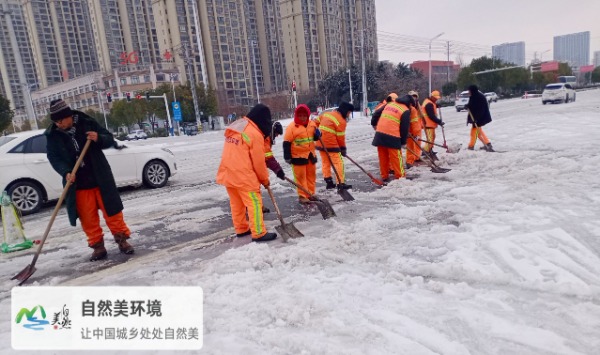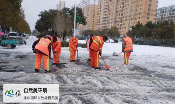 2月20日,臨泉縣迎來了龍年第一場降雪,自然美環境科技有限公司臨泉項目部迅速行動,冒著嚴寒,全力以赴開展“清雪行動”,竭力保障市民出行安全。