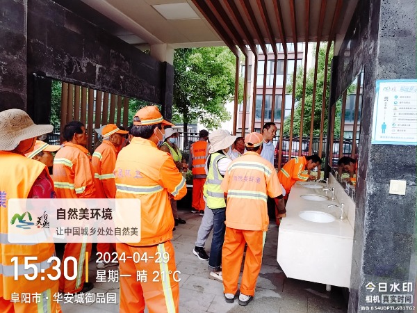 眾所周知,公廁是城市文明的重要窗口,關系到市民的生活質量和城市形象。隨著城市化進程的加快,公廁的數量和質量已經成為衡量一個城市文明程度的重要標志。因此,加強公廁保潔工作,提高公廁衛生水平,是我們每一個環衛人義不容辭的責任。故此為了提高我市公廁保潔水平,提升市民滿意度,2024年4月29日,自然美環境科技有限公司臨泉項目部舉辦了一場公廁星級保潔培訓活動。