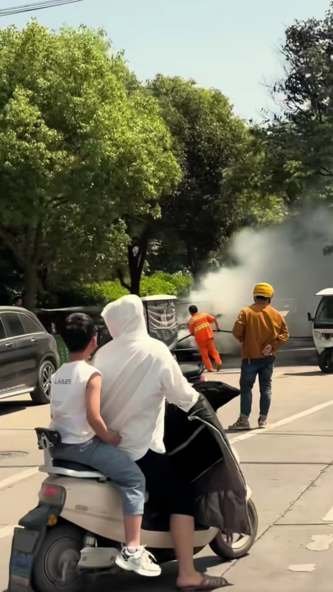 路邊車輛突發火情,自然美灑水車秒變“消防車”