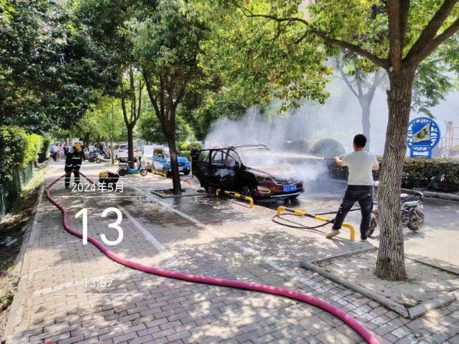 5月13日下午,陽光正烈,城南公園旁卻突然上演了一場驚心動魄的火災。一輛轎車突然自燃,濃煙滾滾,火勢迅猛蔓延。面對這突如其來的災難,周圍的行人和車輛紛紛避讓,現場一片混亂。在這緊要關頭,正在附近作業的8T水車駕駛員代俊賢毫不猶豫地挺身而出。他駕駛著環衛作業車,義無反顧地沖向火源。