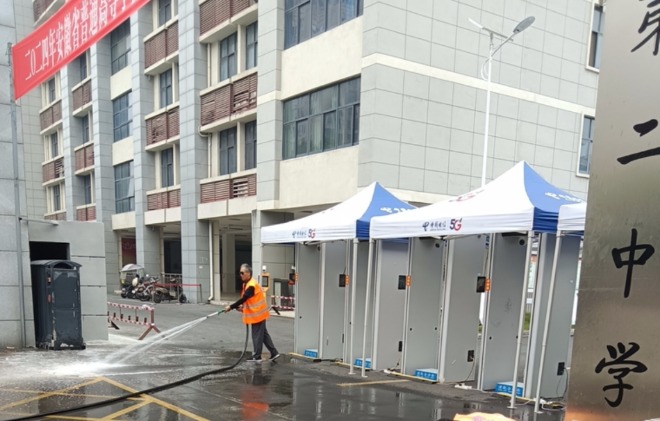 為了確保高考期間的環境衛生,公司提前進行部署,對考點周邊的道路、綠化帶、垃圾收集點等進行全面清掃保潔,確保道路暢通、環境整潔。同時,環衛工人還會對考點周邊的公廁等公共區域進行定時清潔,保證考生在一個干凈衛生的環境中如廁。