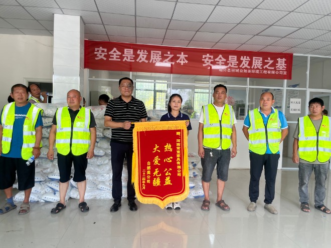 活動現場,自然美馮經理、車隊長陳海國代表自然美環境公司向愛心企業送上錦旗,就愛心企業對我們環衛公司的大力認可和支持表示十分感謝。常寬家具廠魏經理表示:廣大環衛工人舍小家顧大家、默默奉獻的精神受人尊敬,作為一家有社會責任感的企業,他們深知關愛環衛工人、支持環衛事業的重要性,下一步將會繼續關愛我們環衛工人,攜手共建美麗鄉鎮。