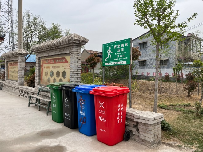 走進鄉村街道,平坦又干凈的村道讓人眼前一亮,地面一塵不染,連一片樹葉都很難尋蹤跡。道路兩旁,不見垃圾雜物,只有整齊排列的垃圾投放點,垃圾桶顏色分明,上面的分類標識清晰醒目。村民們也養成了主動分類的投放的好習慣。