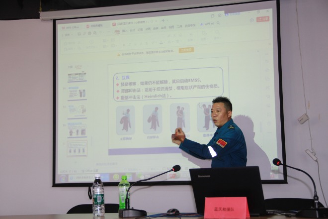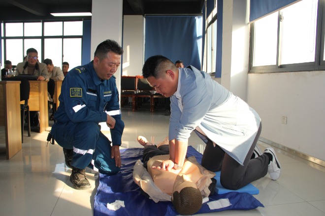 隨后,藍天救援隊的專業救援專家帶來了防溺水、交通安全等貼合日常生活與工作場景的實用知識。講解過程中,專家們結合典型案例,將復雜的安全知識轉化為通俗易懂的語言,讓大家深刻認識到各類安全隱患的潛在威脅。在實操環節,專家們利用訓練假人,現場演示心肺復蘇、海姆利克急救法的規范操作流程,并邀請環衛工人們上臺進行模擬練習。面對踴躍參與的學員,專家們耐心細致、手把手地糾正動作,確保每一個操作步驟都精準到位?,F場互動頻繁,學習氛圍熱烈濃厚,大家在實踐中切實掌握了關鍵急救技能。
