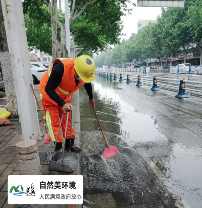 在這場與暴雨的較量中,阜陽自然美環境科技有限公司的環衛人,他們不僅是暴雨中用雙手疏通生命通道的“城市清道夫”,也是雨后讓街道重煥光彩的“美容師”。他們不畏艱險,迎難而上,在風雨中筑起了一道堅實的防線。正是他們的默默付出,才讓阜城在暴雨后迅速恢復整潔與秩序。當市民們走上潔凈的路面時,或許不會留意到那些浸透又風干的工裝,但每一寸清爽的空氣里,都凝結著環衛人“寧臟我一人,潔凈千萬家”的堅守。向暴雨中逆行的橙色力量致敬,他們是阜城這場風雨中最動人的風景線!
