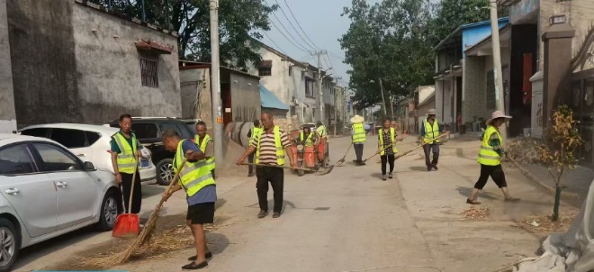 鄉間道路上,麥糠隨風飄散,包裝袋掛在路邊的樹枝上、草叢里。保潔員們分工協作,有的清掃路面,有的撿拾垃圾。對于那些卡在溝渠里、藏在角落里的頑固垃圾,他們蹲下身子,甚至趴在地上,一點一點地摳出來。遇到裝滿麥秸的大車經過,路面又會落下新的雜物,他們毫無怨言,重新返回原地,再次進行清掃。