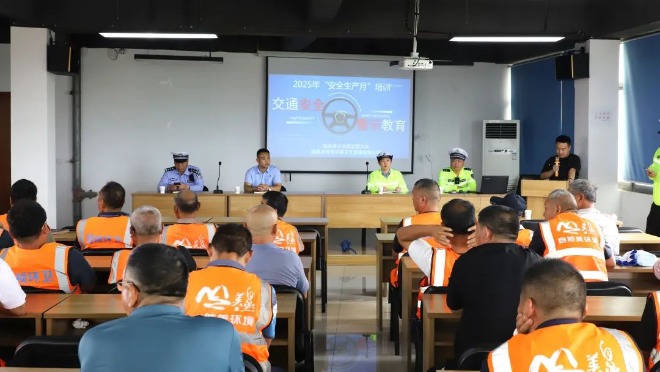 2025年6月26日,我司召開2025年安全生產月交通安全培訓。臨泉縣公安局交管大隊張啟生警官、馬玲警官、我司總經理馮海洋、副總經理王洪偉,以及各部門經理、駕駛員等50余人共同參會。